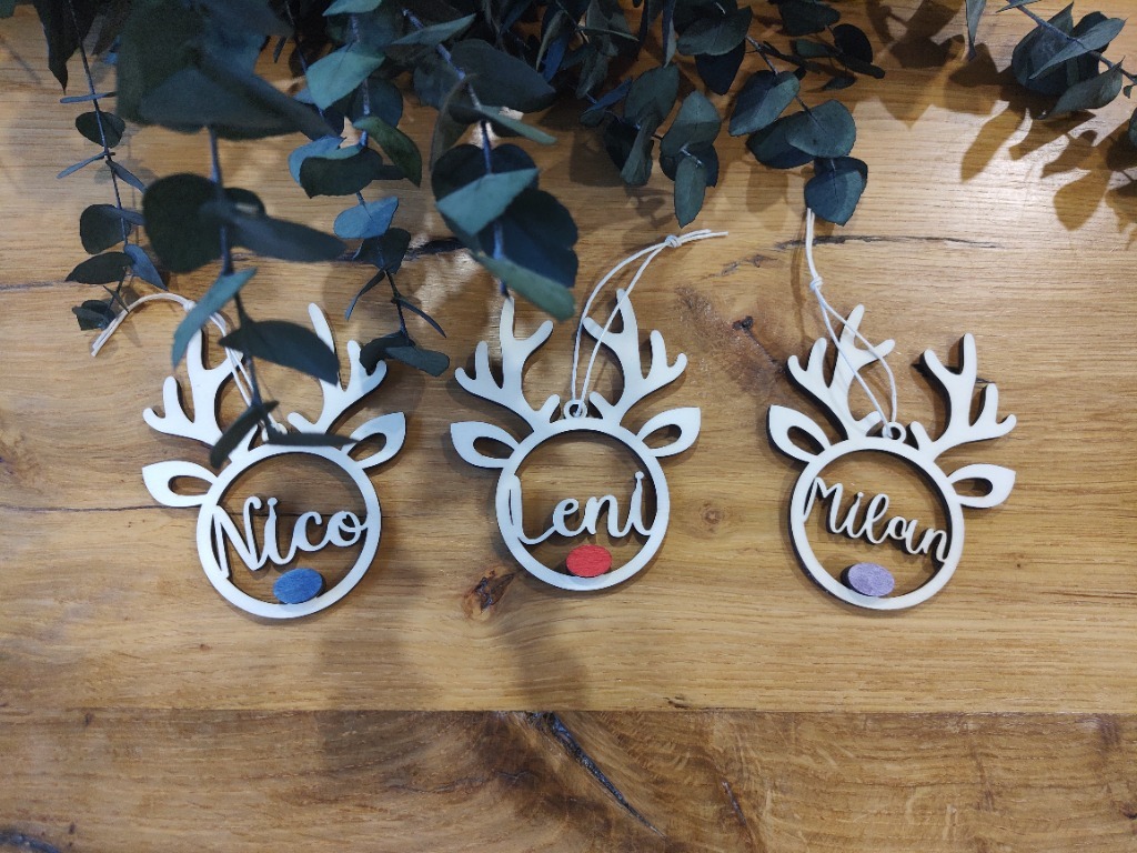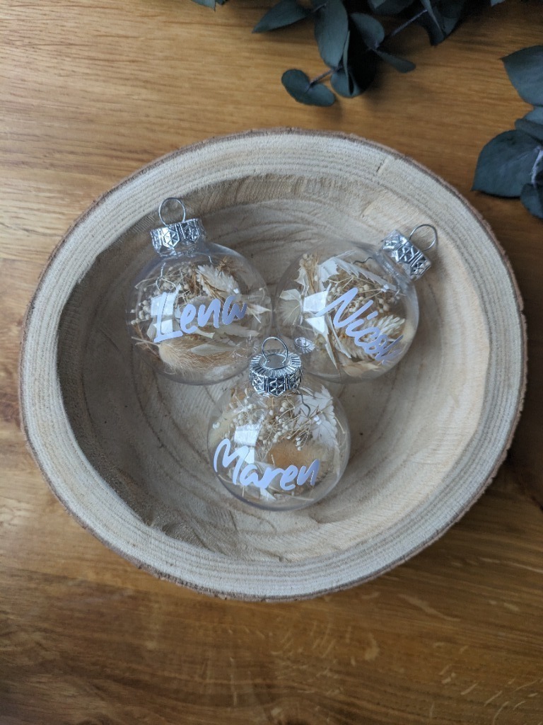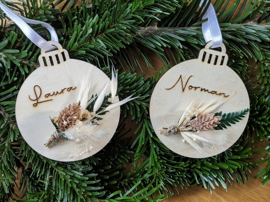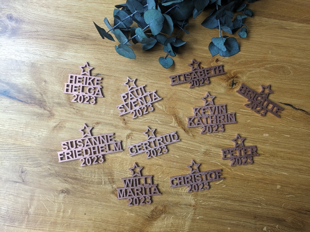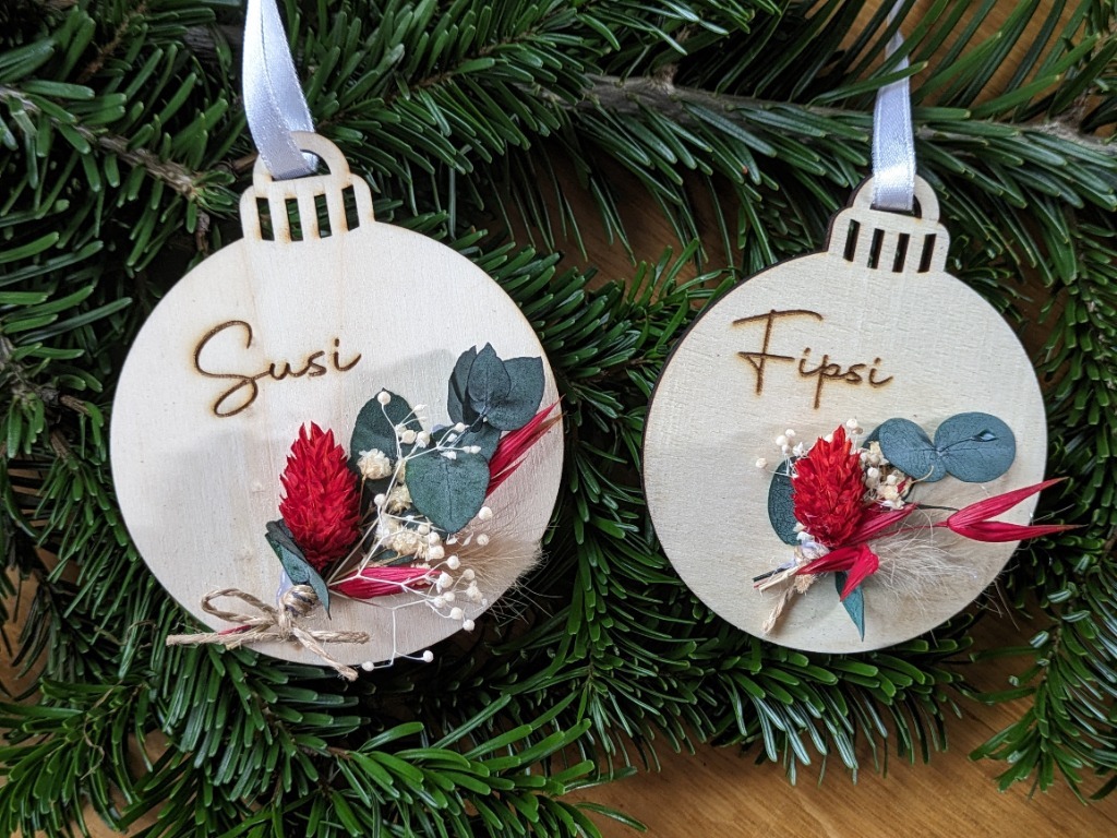 Von personalisierten Christbaumkugeln - in verschiedenen Varianten - bis hin zu Geschenkanhängern, Platzkarten und vieles mehr.