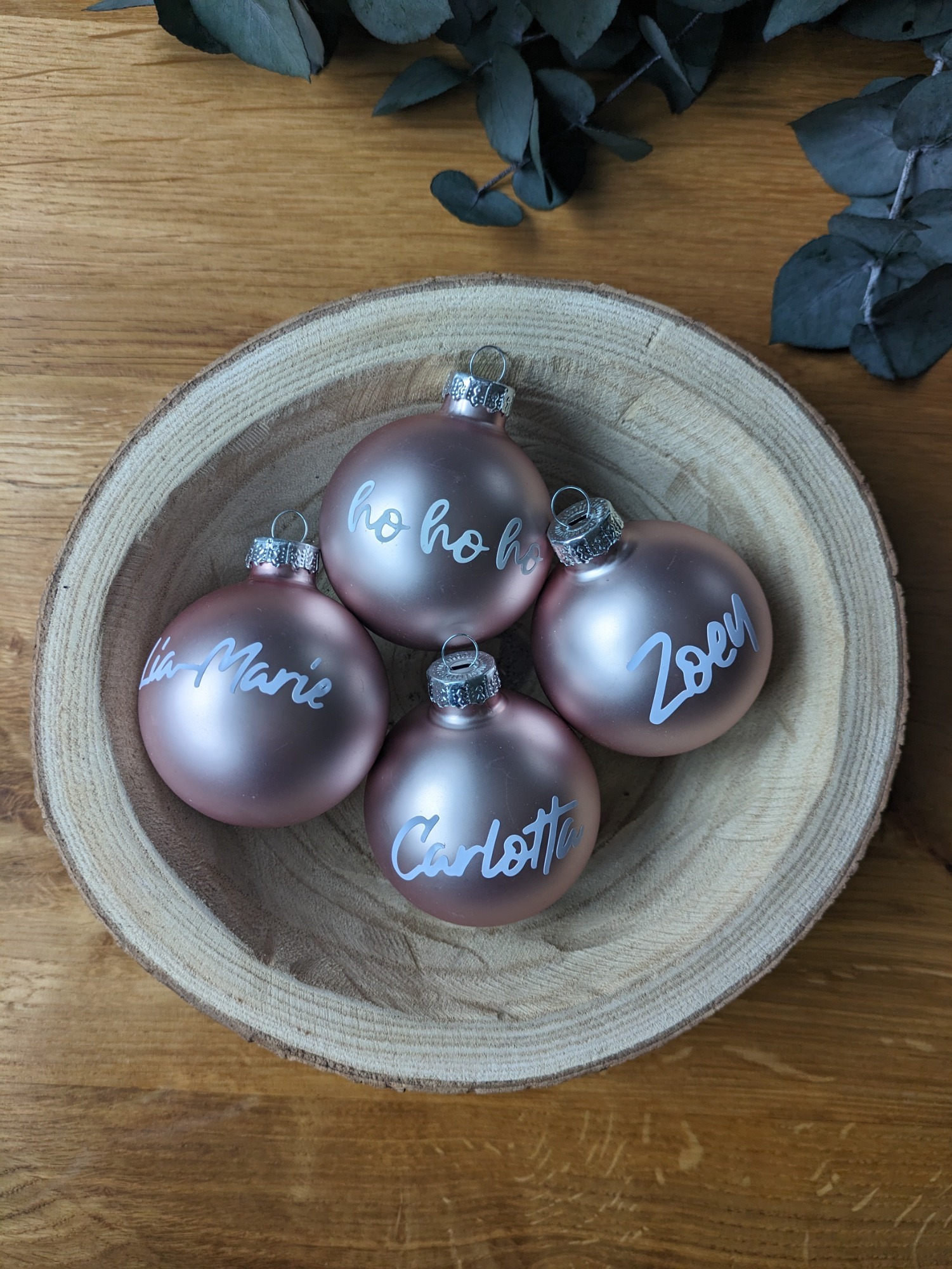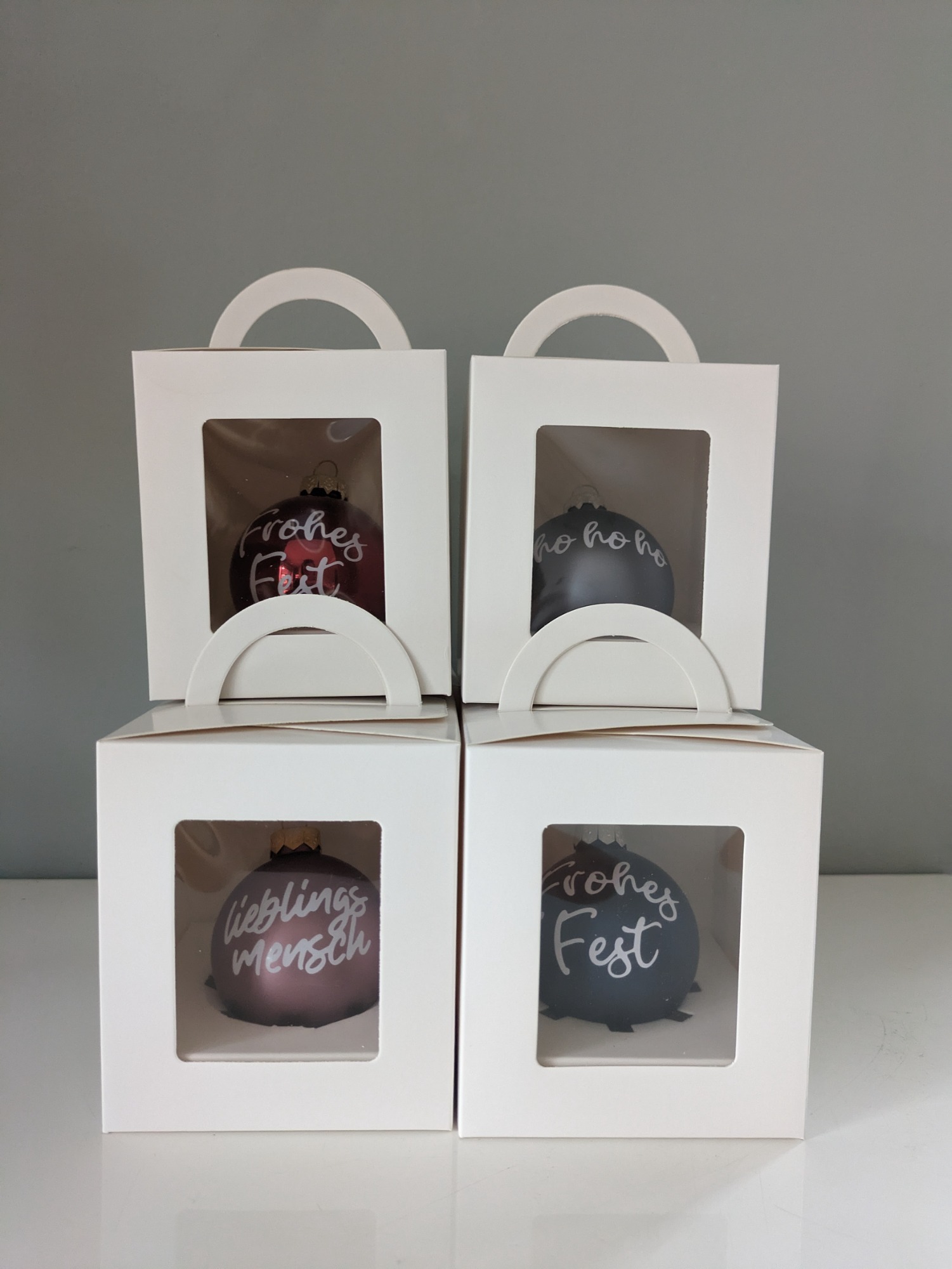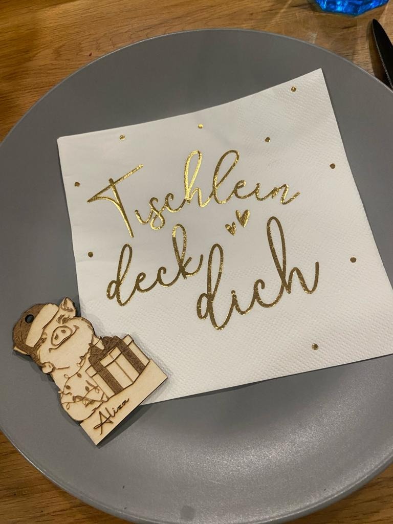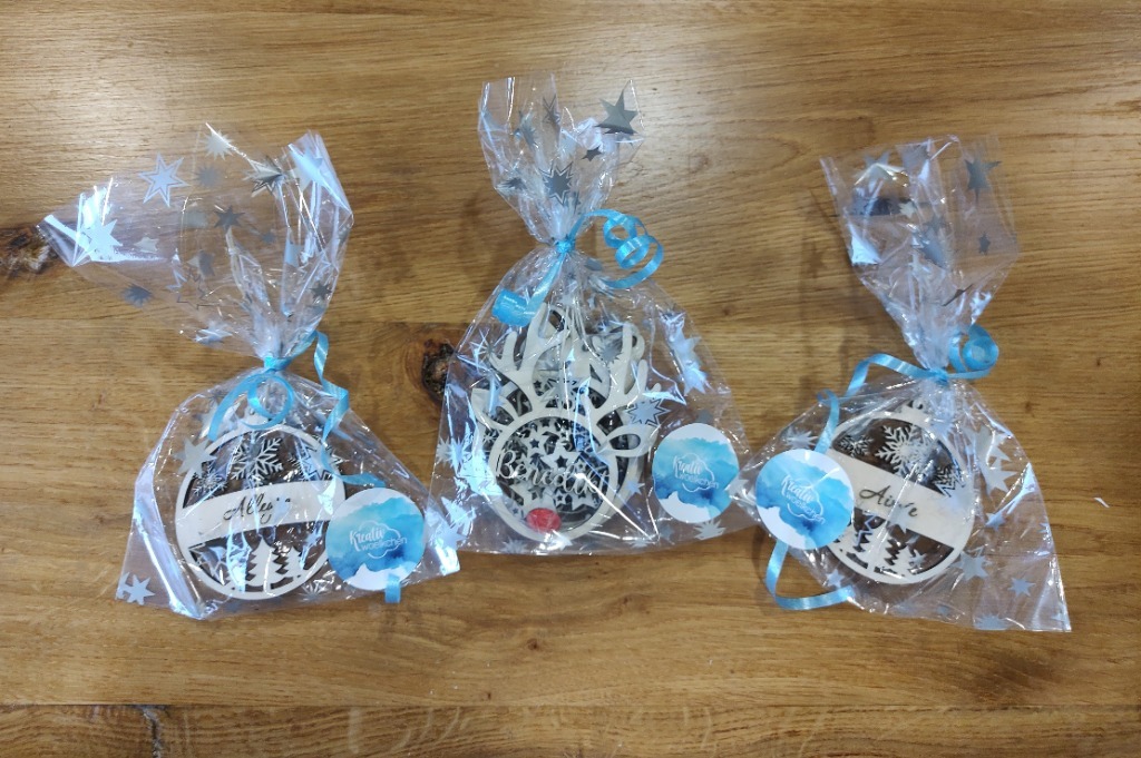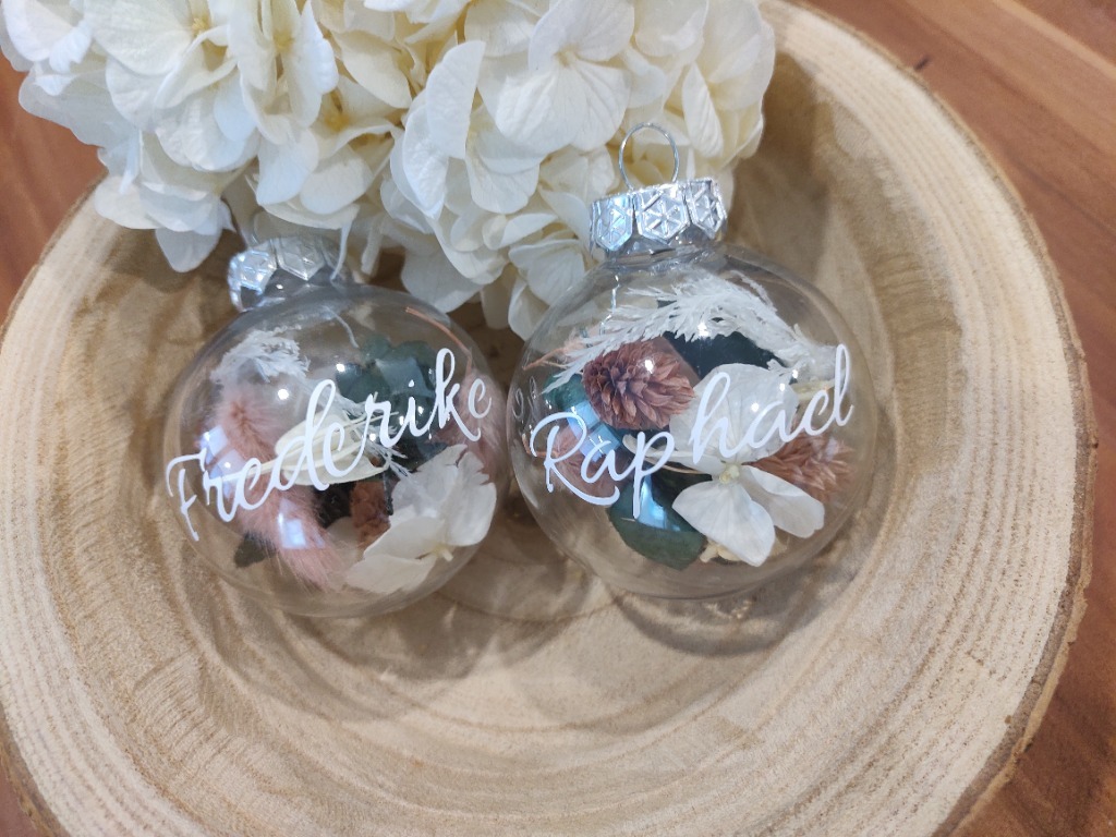 Von personalisierten Christbaumkugeln - in verschiedenen Varianten - bis hin zu Geschenkanhängern, Platzkarten und vieles mehr.