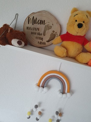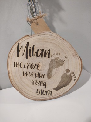 Du suchst nach einem schönen Geschenk zur Geburt? Wie wäre es mit dieser ganz individuellen Holzscheibe?