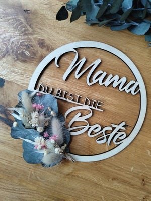 Holzring "Mama Du bist die Beste" mit Trockenblumen