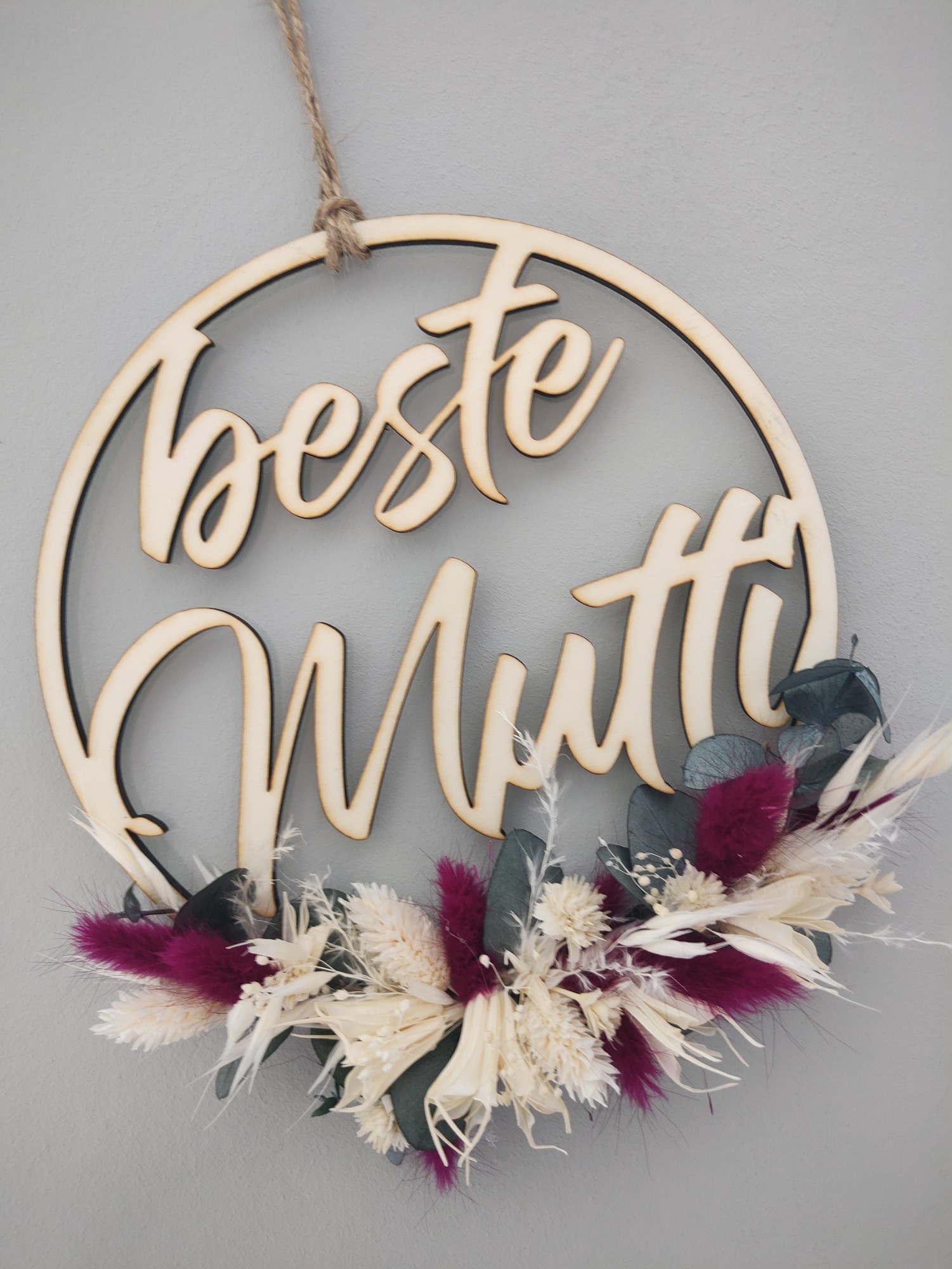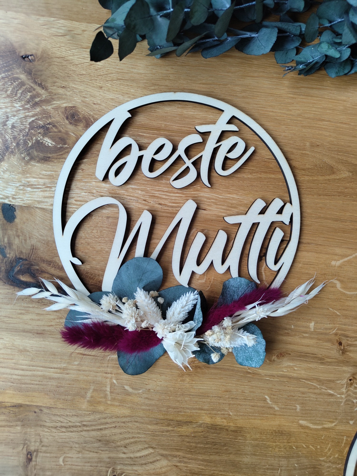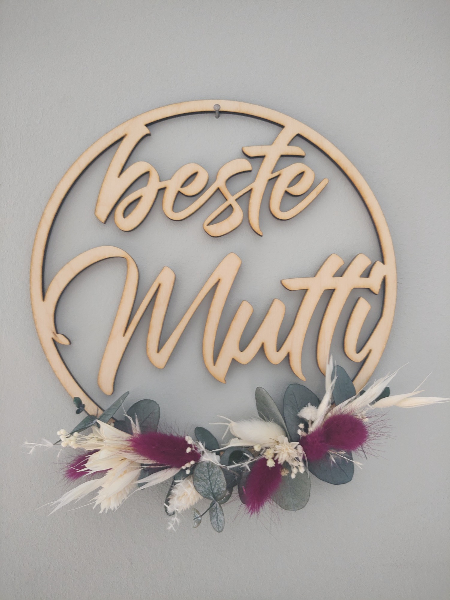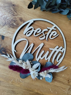 Holzring "beste Mutti" mit Trockenblumen