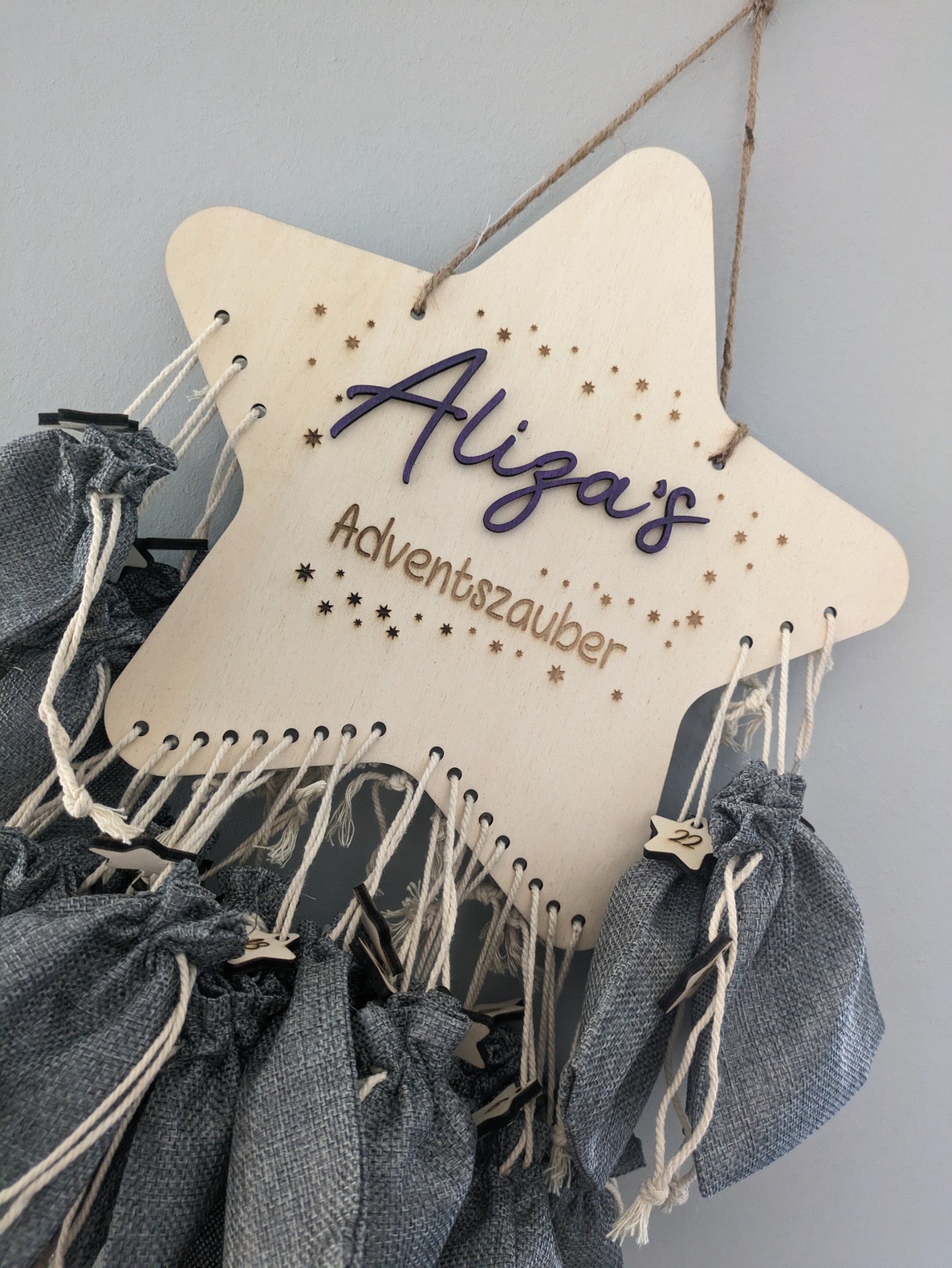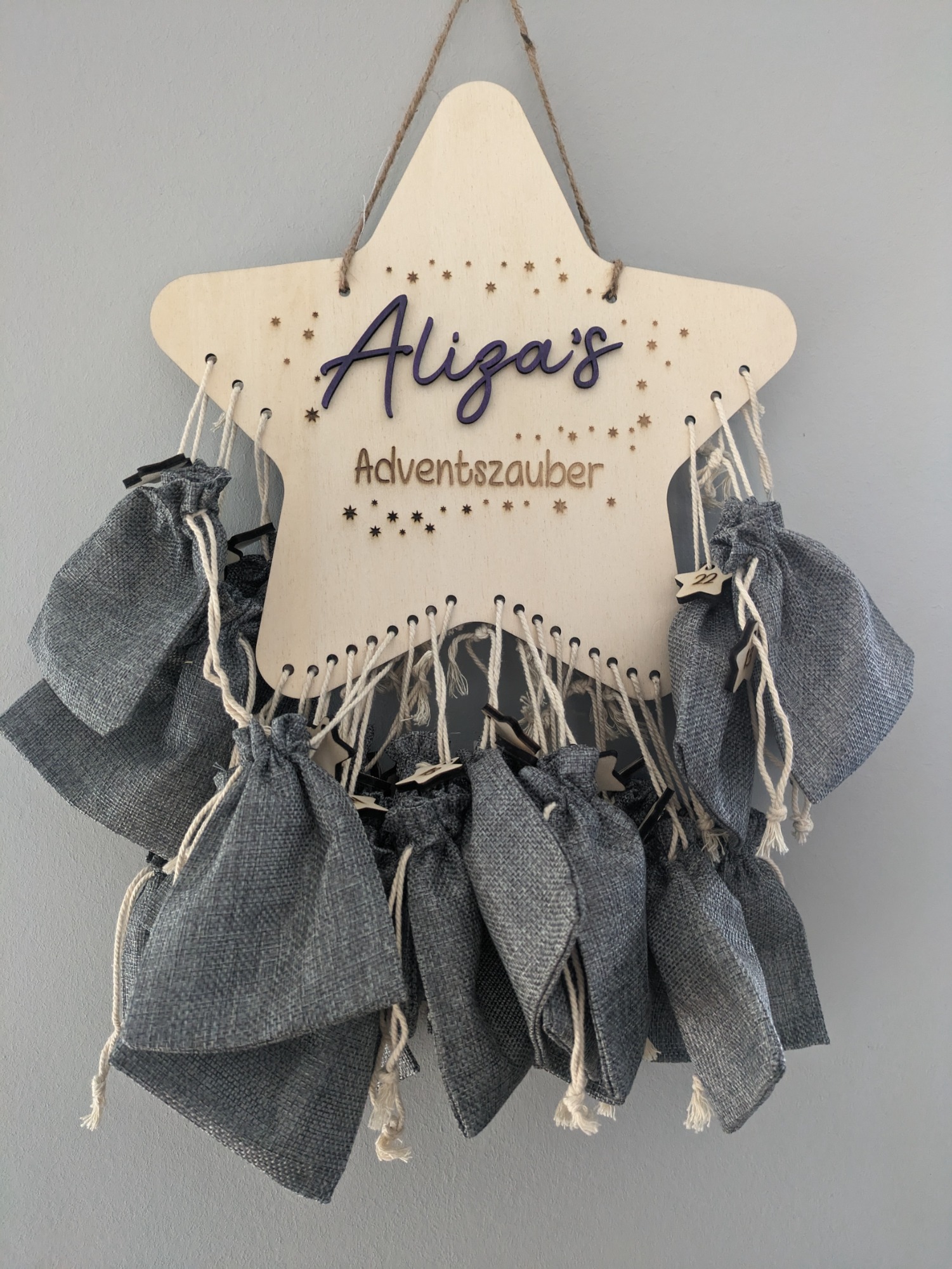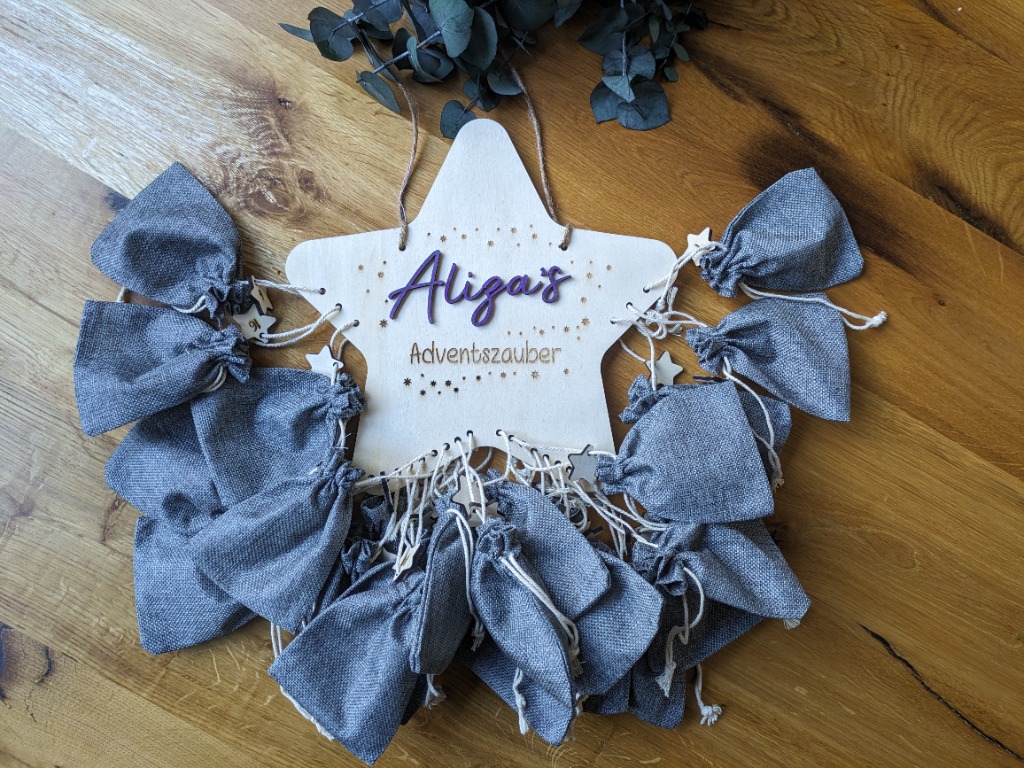 Mit diesem individuell gefertigten Adventskalender hast du das perfekte Geschenk für leuchtende Kinderaugen, aber natürlich auch deine großen Liebsten. Die Säckchen können von dir befüllt und damit ganz einmalig und einzigartig gestaltet werdenDieser nachhaltige und zeitlose DIY-Adventskalender aus Holz begleitet euch nicht nur in diesem Jahr, sondern auch in allen kommenden Weihnachtsfesten. Jahr für Jahr könnt ihr die Säckchen mit Liebe füllen und die Vorfreude auf Weihnachten spüren.
