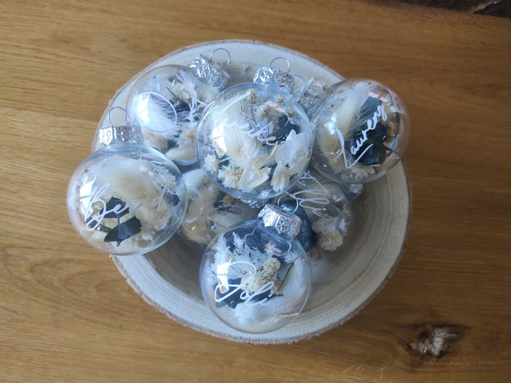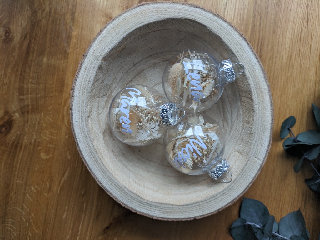 Du suchst nach einem kleinen Weihnachtsgeschenk? Wie wäre es mit einer personalisierten Kugel für den Weihnachtsbaum?